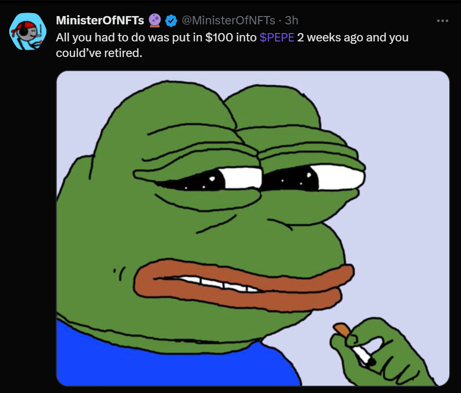 That's right, the PEPE token, inspired by the "Pepe the Frog" meme, has already made many millionaires overnight.